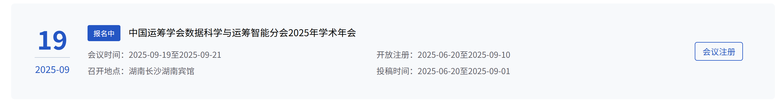 点击【全部会议】进入“中国运筹学会数据科学与运筹智能分会2025年学术年会”