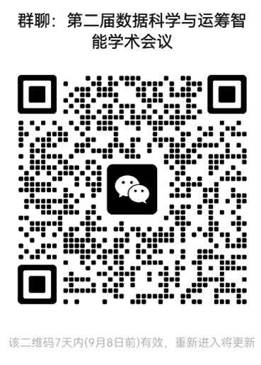 微信群名:第二届数据科学与运筹智能学术会议(若群人数超200人或二维码过期,请需要入群的参会代表扫码添加工作人员微信后进群,添加微信请备注“第二届数据科学与运筹智能学术会议”)