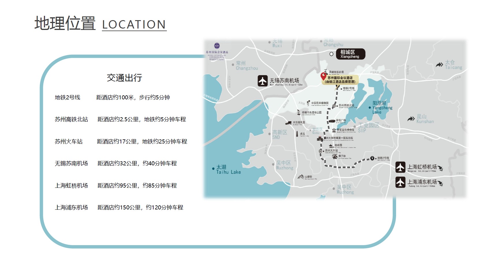 苏州国际会议酒店,是由锦江国际集团管理的高端品牌酒店,位于苏州市相城区高铁新城相融路699号,坐拥环秀湖旖旎风光,毗邻苏州高铁北站,占地面积达246亩,建筑面积30.8万平米。